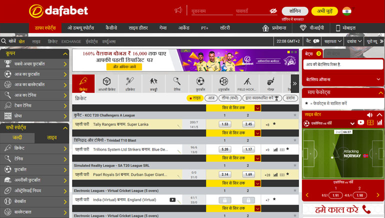 बोनस का उपयोग Dafabet द्वारा पेश किए जाने वाले अंतर्राष्ट्रीय खेल सट्टेबाजी बाज़ारों की किसी भी विस्तृत श्रृंखला पर दांव लगाने के लिए किया जा सकता है। इन आयोजनों में अंतर्राष्ट्रीय क्रिकेट (अंग्रेजी और आयरिश सत्र पूरे जोश में हैं), टेनिस (विंबलडन जुलाई की शुरुआत में शुरू होने वाला है), यूरोपीय फ़ुटबॉल और कबड्डी और UFC जैसे अन्य विशिष्ट आयोजन शामिल हैं।