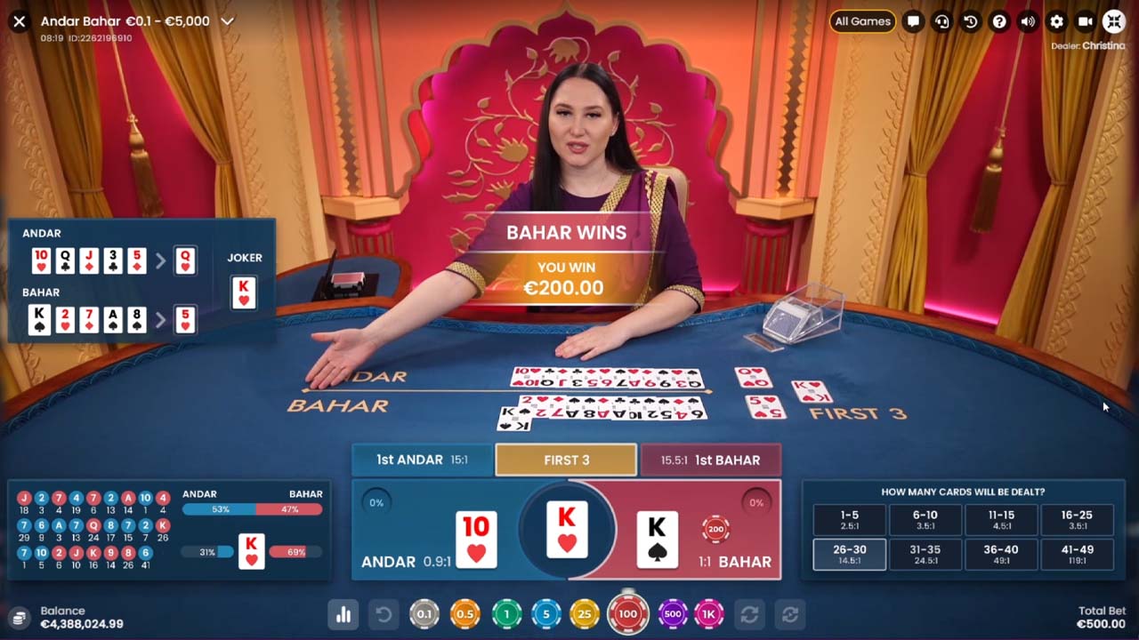 अंदर बहार में जीतने के लिए, आपको यह अनुमान लगाना होगा कि जोकर (घर) से मेल खाने वाला कार्ड तालिका के किस तरफ पहले दिखाई देगा, यही कारण हैUwin N8 Casino – Top Indian Online Casino कि यह गेम खेलना इतना आसान है। आपको अंदर (अंदर) या बहार (बाहर) के बीच चयन करना होगा, जिससे आपके जीतने की संभावना 50/50 हो जाएगी।