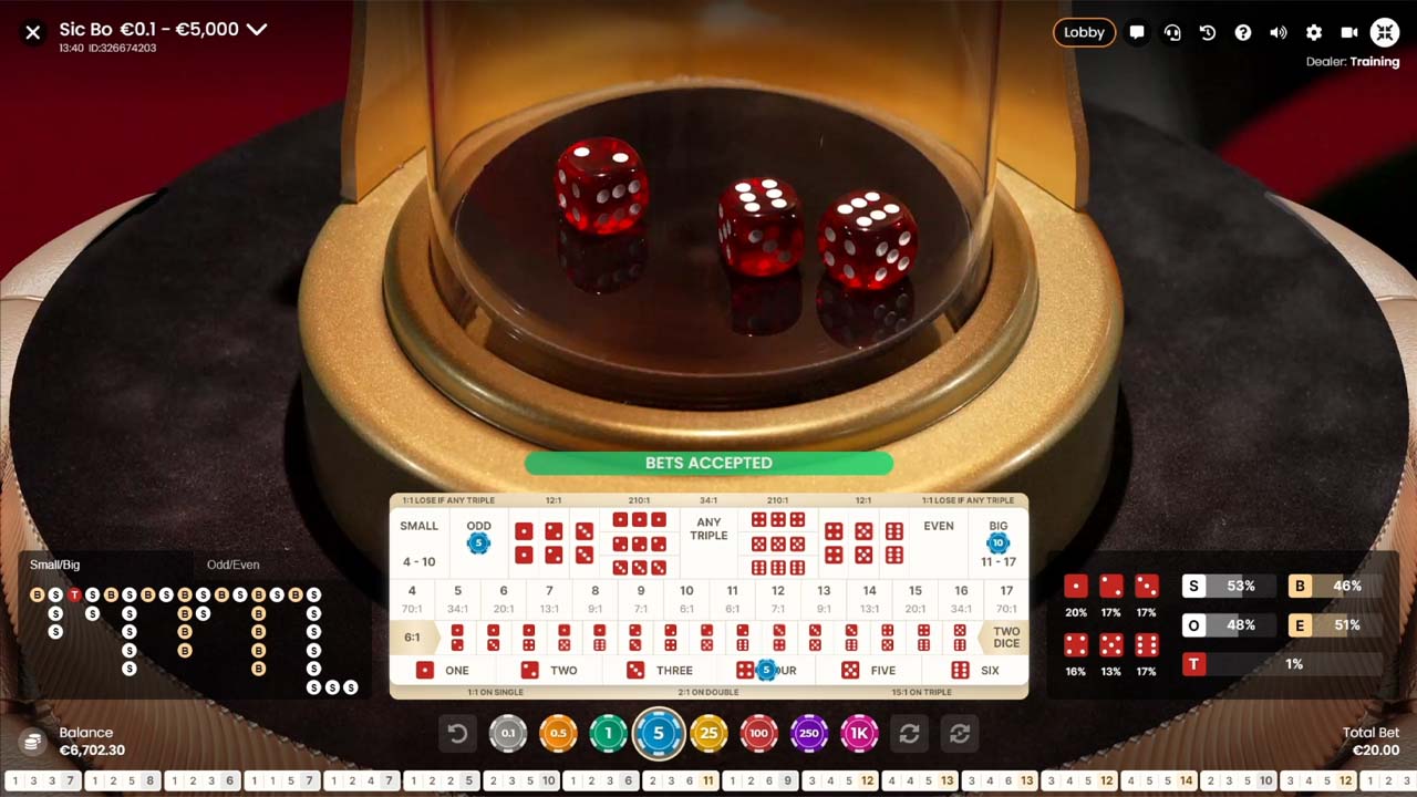 खिलाड़ी एक सुंदर एशियाई-थीम वाले लाउंज सेटिंग में एक शानदार क्रुपियर को देखने की उम्मीद कर सकते हैं, जो एक गुंबद के बगल मN8 Referral Code: 100% वर्किंग कोड 2025ें तीन विशाल लाल पासों के साथ बैठा है। दांव $0.10 से $5,000 तक होते हैं, जो इसे उच्च रोलर्स या छोटे बजट वाले N8 Live Casino Login – Access Your Accountखिलाड़ियों के लिए उपयुक्त बनाता है।